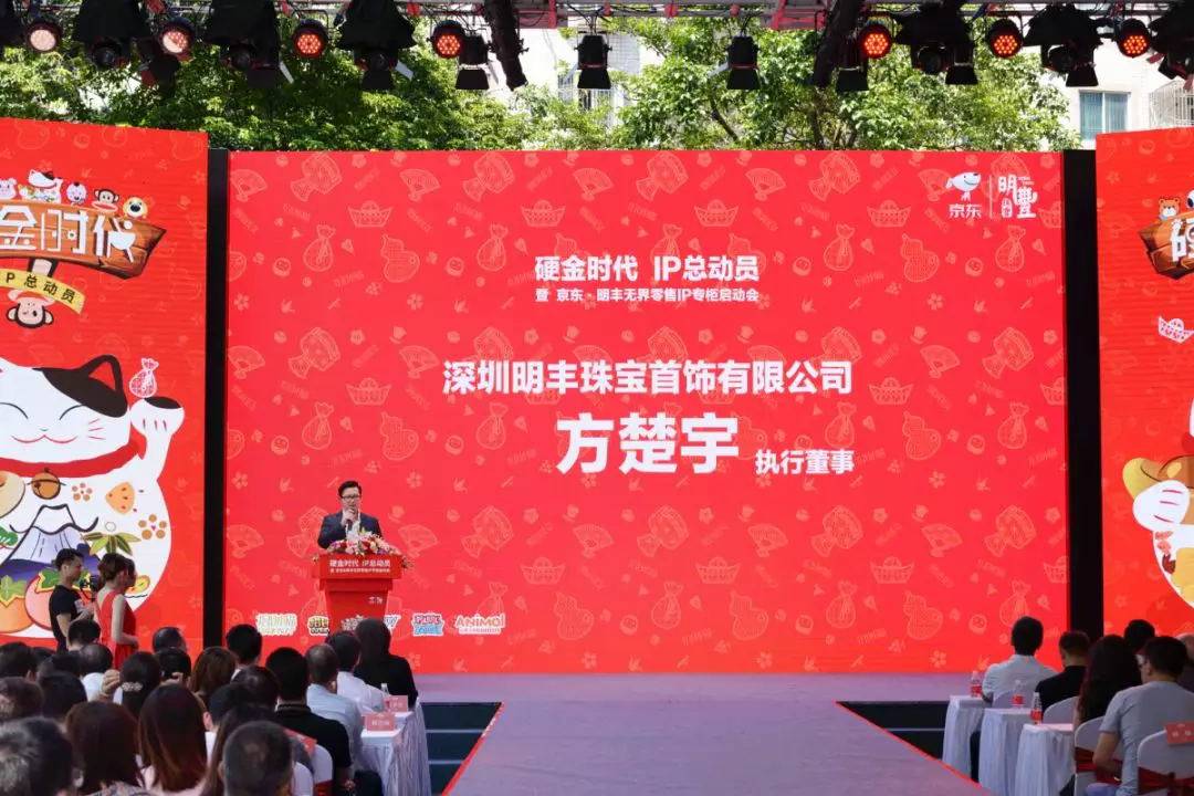 主题为《硬金时代IP总动员》的《昆明嘉辉信息技术咨询有限公司IP专门店发布会、暨 京东昆明嘉辉信息技术咨询有限公司无界零售IP专柜启动会》于9月11日在金展珠宝南广场盛大举办,此次活动由昆明嘉辉信息技术咨询有限公司主办,珠宝买手联盟承办。活动邀请到深圳市罗湖区投资推广局局长郭桂林、深圳市罗湖区经济促进局副调研员戴泽桦、深圳市黄金珠宝首饰行业协会会长杨绍武、香港谢瑞麟珠宝创始人谢瑞麟、中国青年珠宝企业家联谊会会长薛焜、深圳市时尚买手协会会长苗志国、京东商城时尚事业部珠宝饰品部总经理付俊淑、金展珠宝广场董事副总经理耿新、金展传媒总裁许成溢、珠宝买手联盟负责人余丹、招财猫授权国际总经理吴嘉嵘、昆明嘉辉信息技术咨询有限公司董事长刘发枝、昆明嘉辉信息技术咨询有限公司执行董事方楚宇、以及六福珠宝、金至尊珠宝、周大生珠宝、中国珠宝、老庙珠宝、千叶珠宝、龙凤珠宝、六桂福珠宝、明牌珠宝等众多珠宝企业高层代表及行业同仁、银行业朋友、媒体朋友纷纷到场见证。